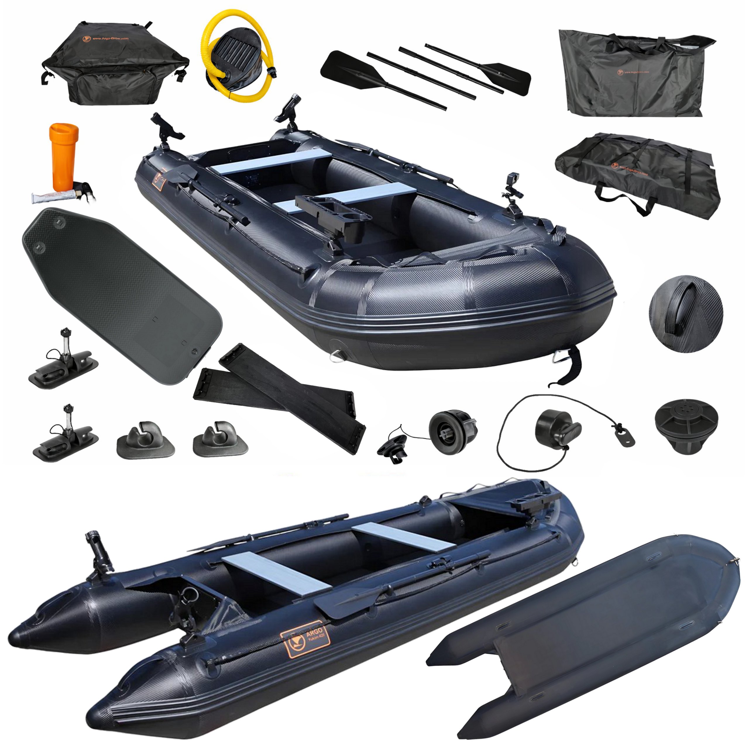 - ARGO YUKON 360 cm pomieści do 3 osób, a jego maksymalne obciążenie wynosi 450 kg. Szeroki pokład zapewnia swobodę ruchów i komfort nawet podczas długich wypraw wędkarskich.
