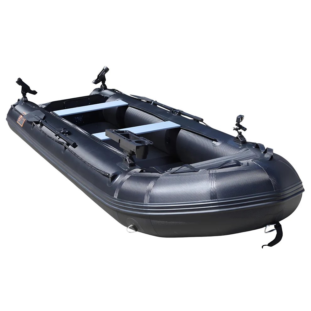 - Nadmuchiwane tuby wykonane z PVC o strukturze włókna węglowego i gęstości 1100 g/m², zapewniają doskonałą odporność na ścieranie, promieniowanie UV oraz zmienne warunki atmosferyczne