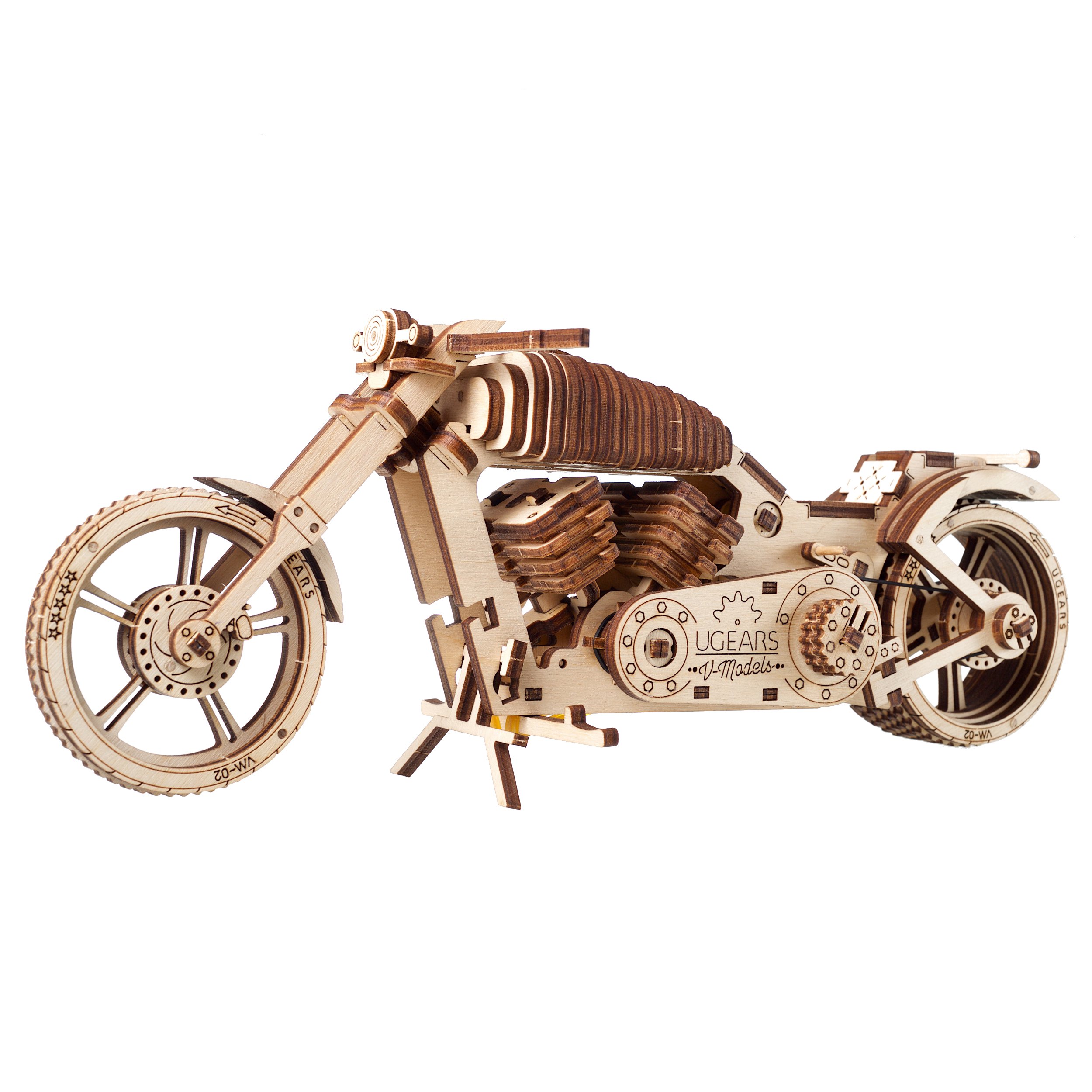 Drewniane Puzzle 3D motocykl VM-02 od marki Ugears to wyjątkowy prezent dla fanów jazdy na dwóch kółkach. Wyjątkowość tego modelu polega na tym, że po nakręceniu motocykl sam jedzie i jest w stanie jednorazowo pokonać odległość 3 metrów!