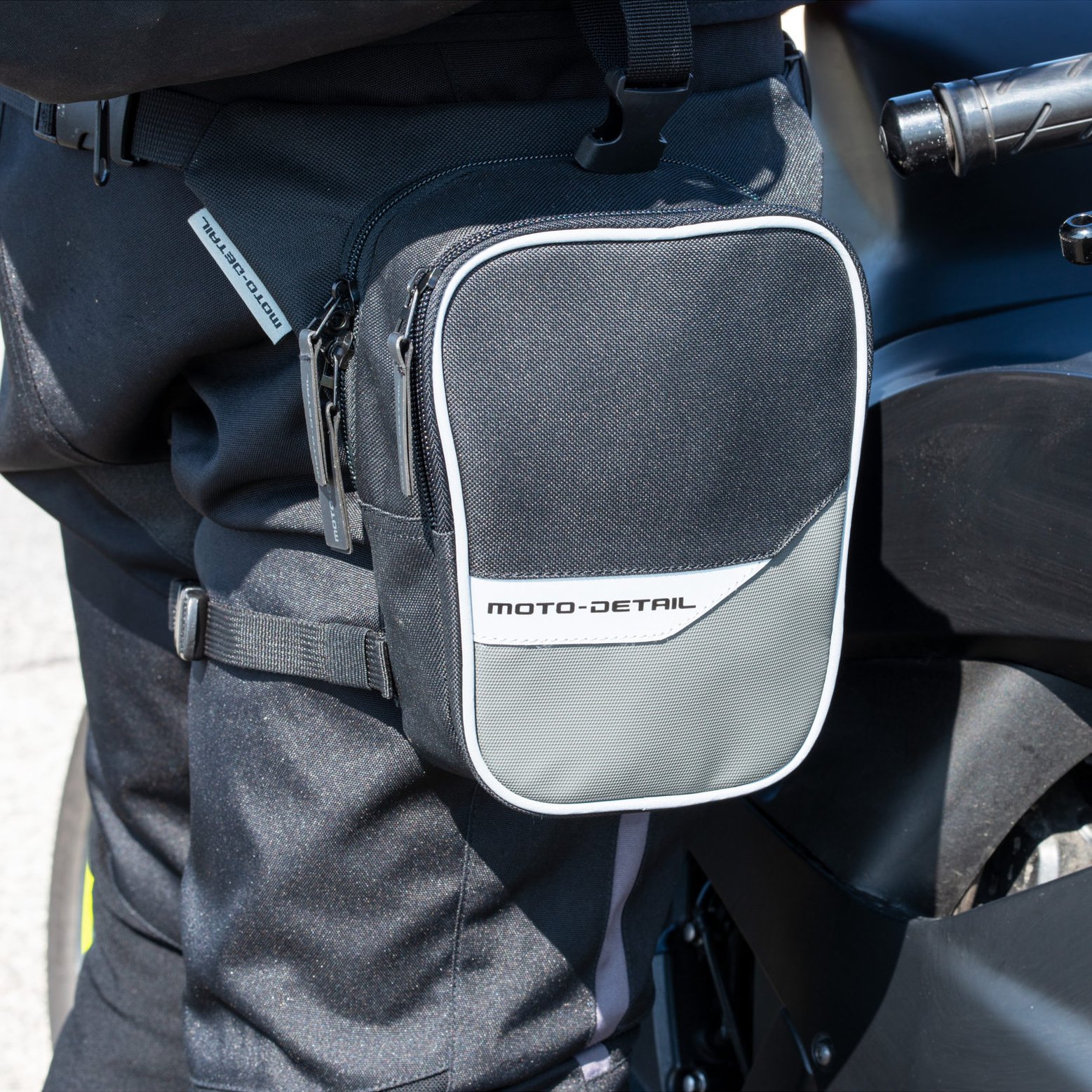 Wyobraź sobie, że masz ochotę na krótką wyprawę niedaleko swojego domu. Jednakże, kiedy przygotowujesz się do wyjścia, zdajesz sobie sprawę, że wszystkie kieszenie w twoim kombinezonie są już zapełnione innymi rzeczami. Na szczęście, w takich sytuacjach z pomocą przychodzi saszetka marki Moto-Detail. Dzięki torbie na nogę, Twoje cenne przedmioty są bezpieczne i suche. Torba ta jest mocno przymocowana do twojej nogi, co sprawia, że masz pewność, że nic nie zgubisz. Pojemność torby to 1L.