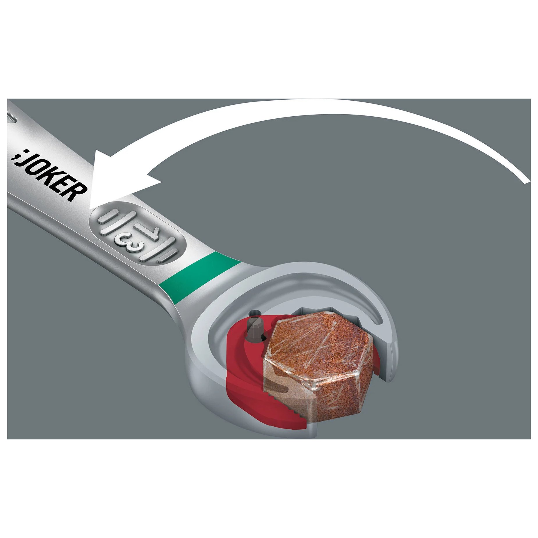 Mechanizm grzechotkowy po stronie oczkowej ma wyjątkowo wysokie drobne uzębienie – 80 zębów. Zapewnia on elastyczność nawet w wąskich przestrzeniach montażowych