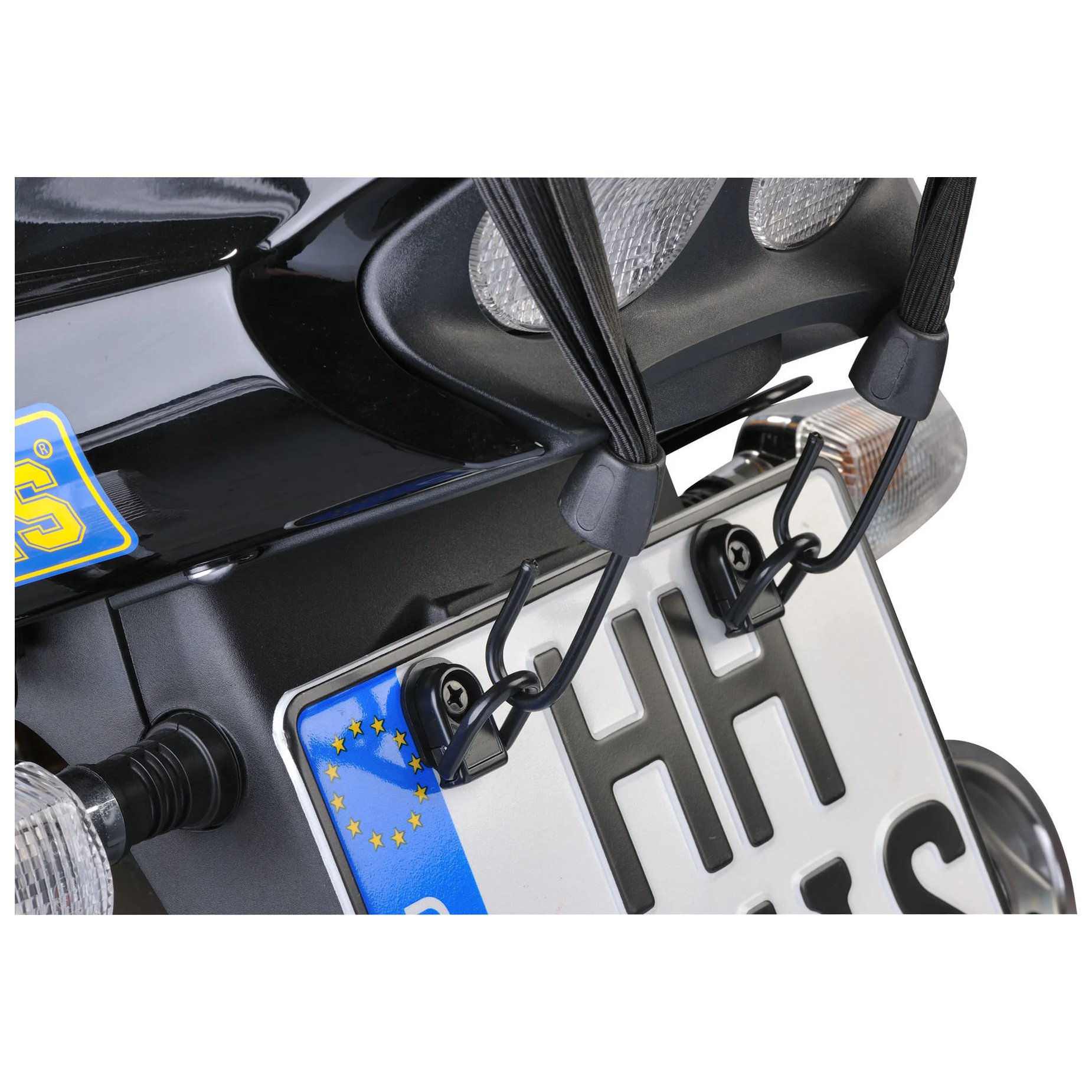 - Uniwersalne zastosowanie: Możesz je zamontować pod śrubą tablicy rejestracyjnej lub inną śrubą na motocyklu, zapewniając dodatkowe punkty mocowania dla siatek, pasów gumowych itp.